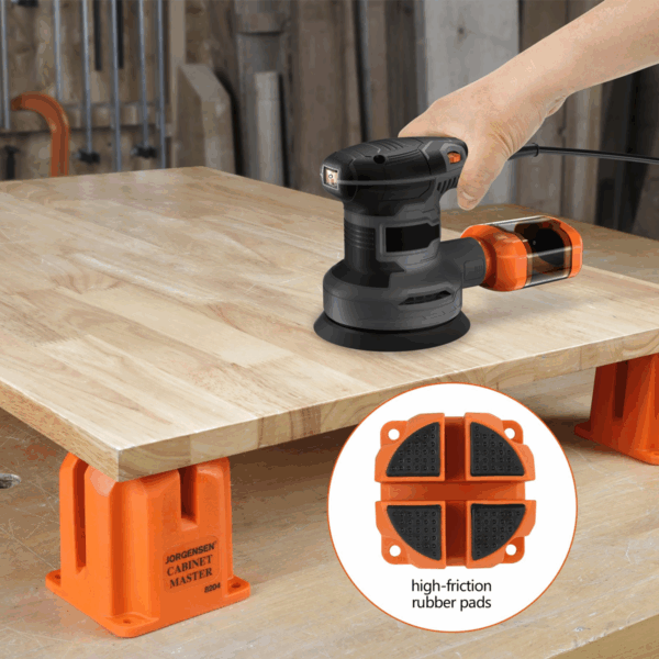 Elevating your work off the bench while the high‑friction rubber pads on top stop the work piece from sliding.